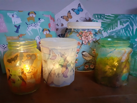 Come and try your hand at the art of decoupage to make a lovely tea-light holder or decorate a bottle.