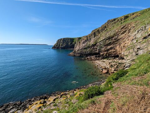 During May and June the island is carpeted with Bluebells and Red Campion, with Thrift and Sea Campion seen along cliff edges later in the year. Large areas of the island are dominated by Bracken and salt and wind-tolerant maritime grasses.